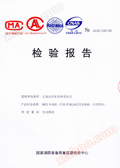 La cererea clientului, pot fi furnizate rapoarte de inspecție pentru inspecția de tip sau inspecția încredințată de centrul național de control al calității echipamentelor de pompieri.